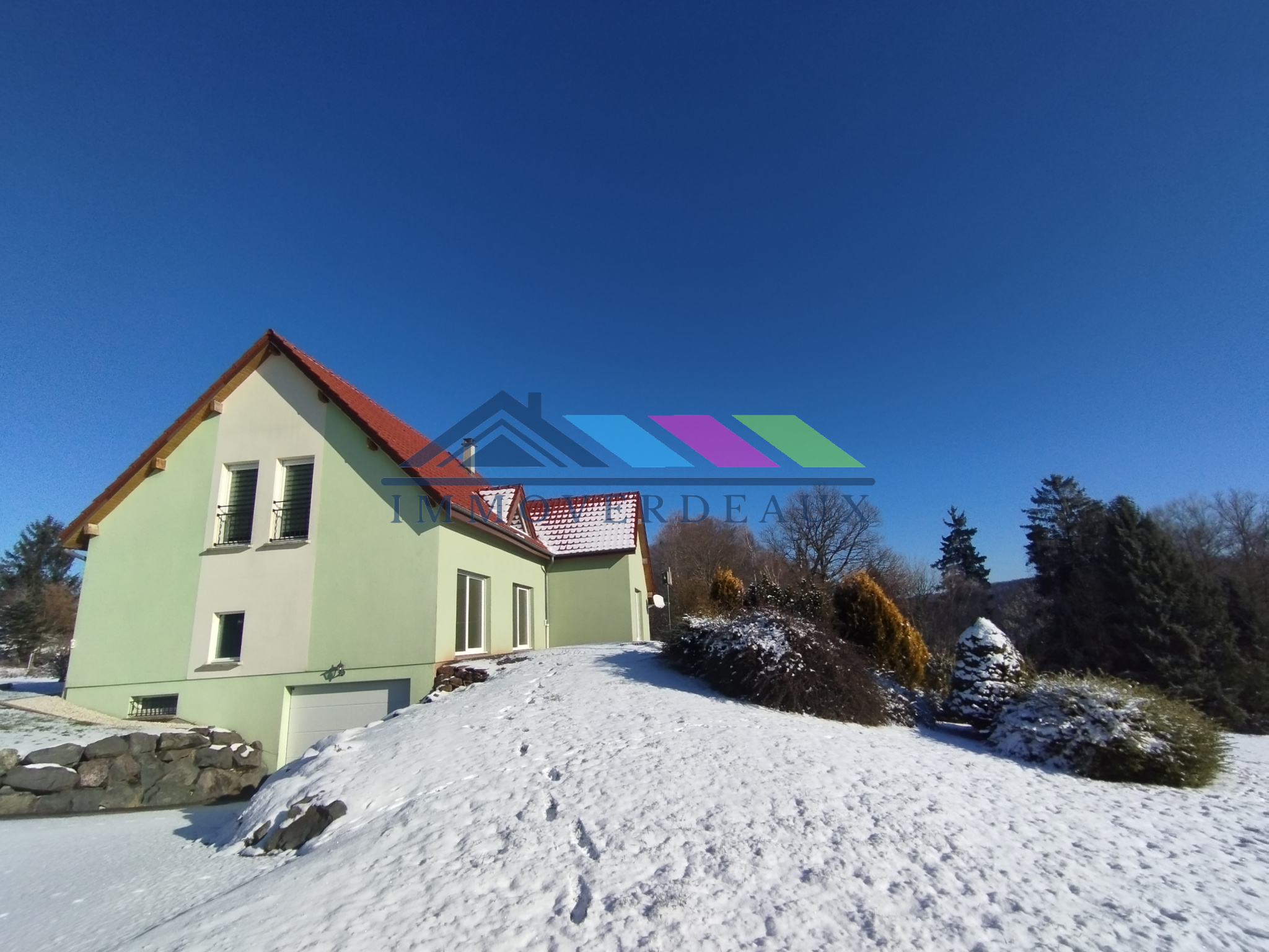 Maison récente avec terrasse et grand terrain 1,35 ha. Proche N4, 1 h Nancy Metz, 25 mn sarrebourg